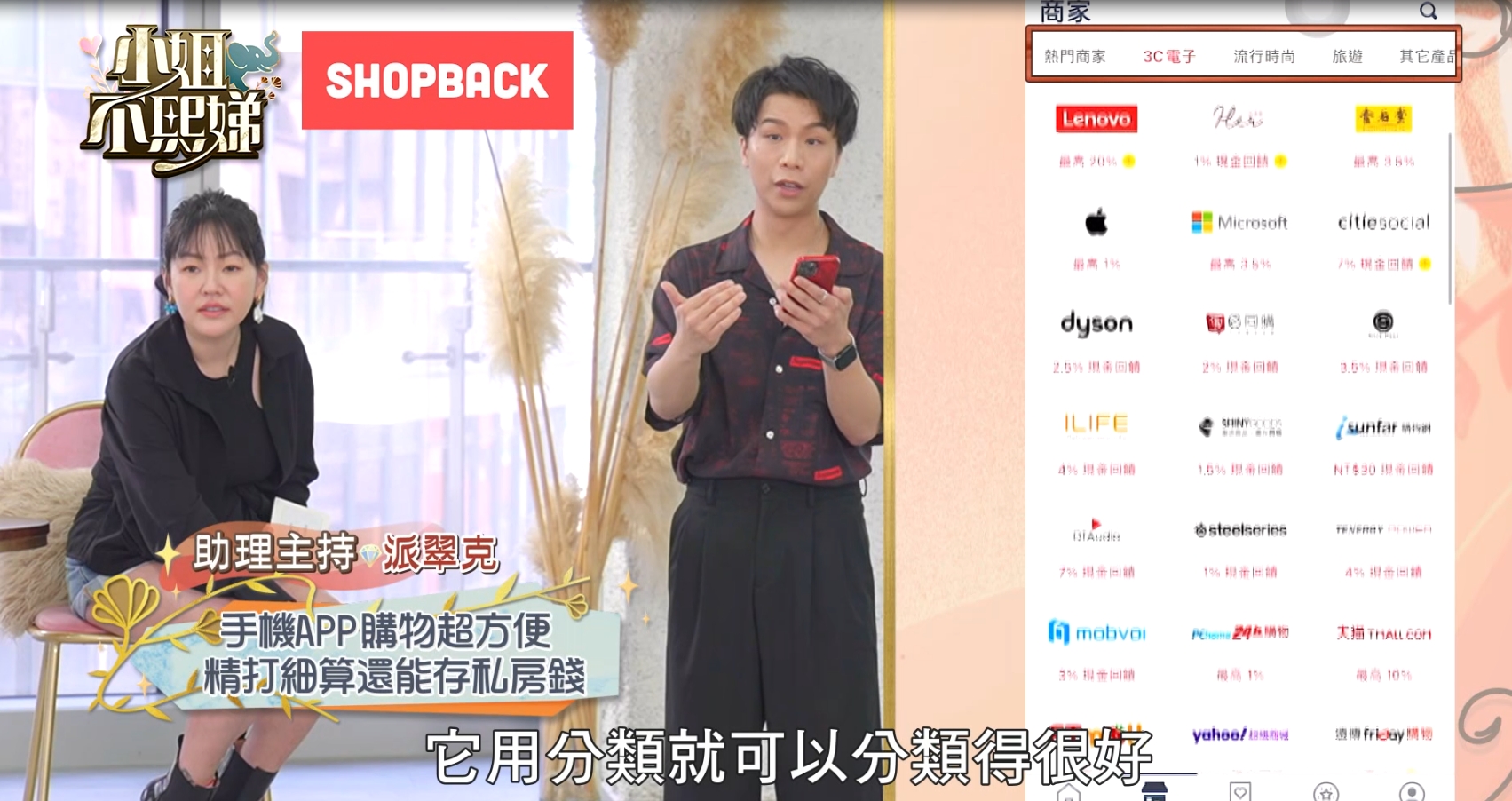 ▼ShopBack 合作500間以上商家分類清楚,涵蓋食衣住行育樂。(圖/翻攝自小姐不熙娣)