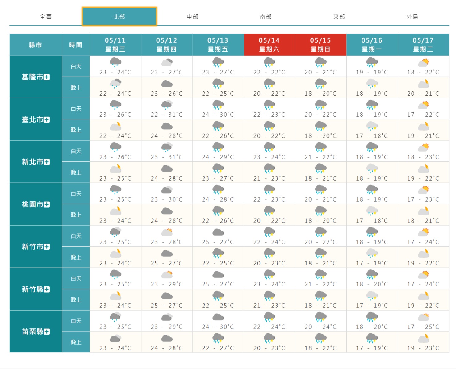 ▼北部一周天氣概況。(圖/中央氣象局)