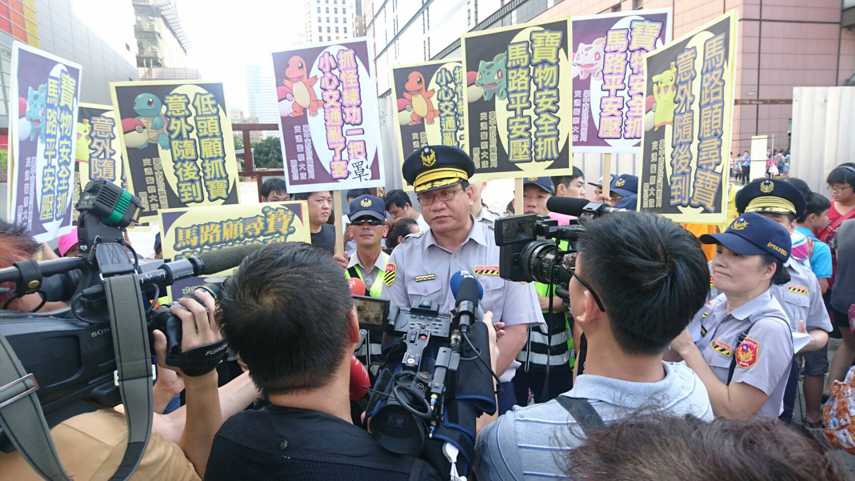 另外,為防止玩家玩「精靈寶可夢」不遵守交通規則發生事故,台中市警局除第一時間透過官方臉書、LINE對玩家提醒注意事項,包括交通警察大隊及第二分局,今天分別選擇最熱鬧的百貨商圈、大賣場及公園周邊等人潮眾多處所,舉行路遊「抓寶不低頭,馬路安全行」的交通安全宣導活動。針對寶可夢亂象,警政署也表示將加強取締違規行為,並呼籲: