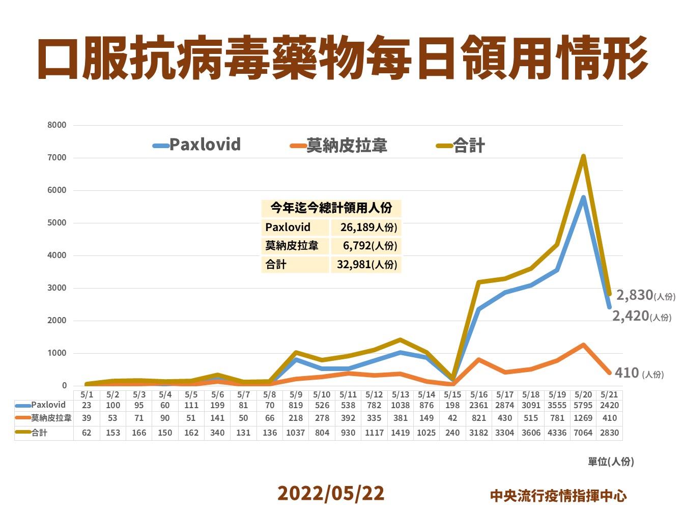 ▼至今共有超過3.2萬人領用口服抗病毒藥物。(圖/中央流行疫情指揮中心提供)
