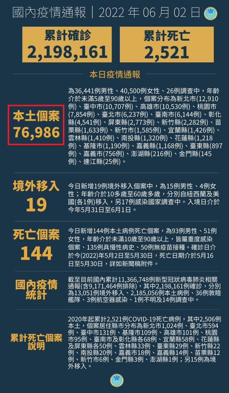 不過這並非衛福部第一次出包,6月2日時,衛福部的LINE於當天下午2時22分推播,表示新增7萬6986例COVID-19確定病例,分別為7萬6967例本土及19例境外移入,然而圖上卻顯示全台累計確診數「1千136萬6748」人,本土確診數也不正確,不少網友發現後也發文詢問,「衛福部小編累了嗎?」,並貼出前後兩日的國內疫情通報圖,「這兩張圖好像有一個地方怪怪的喔,體恤辛苦的小編,特別爆卦提醒,累積確診確定是正確的嗎?」
