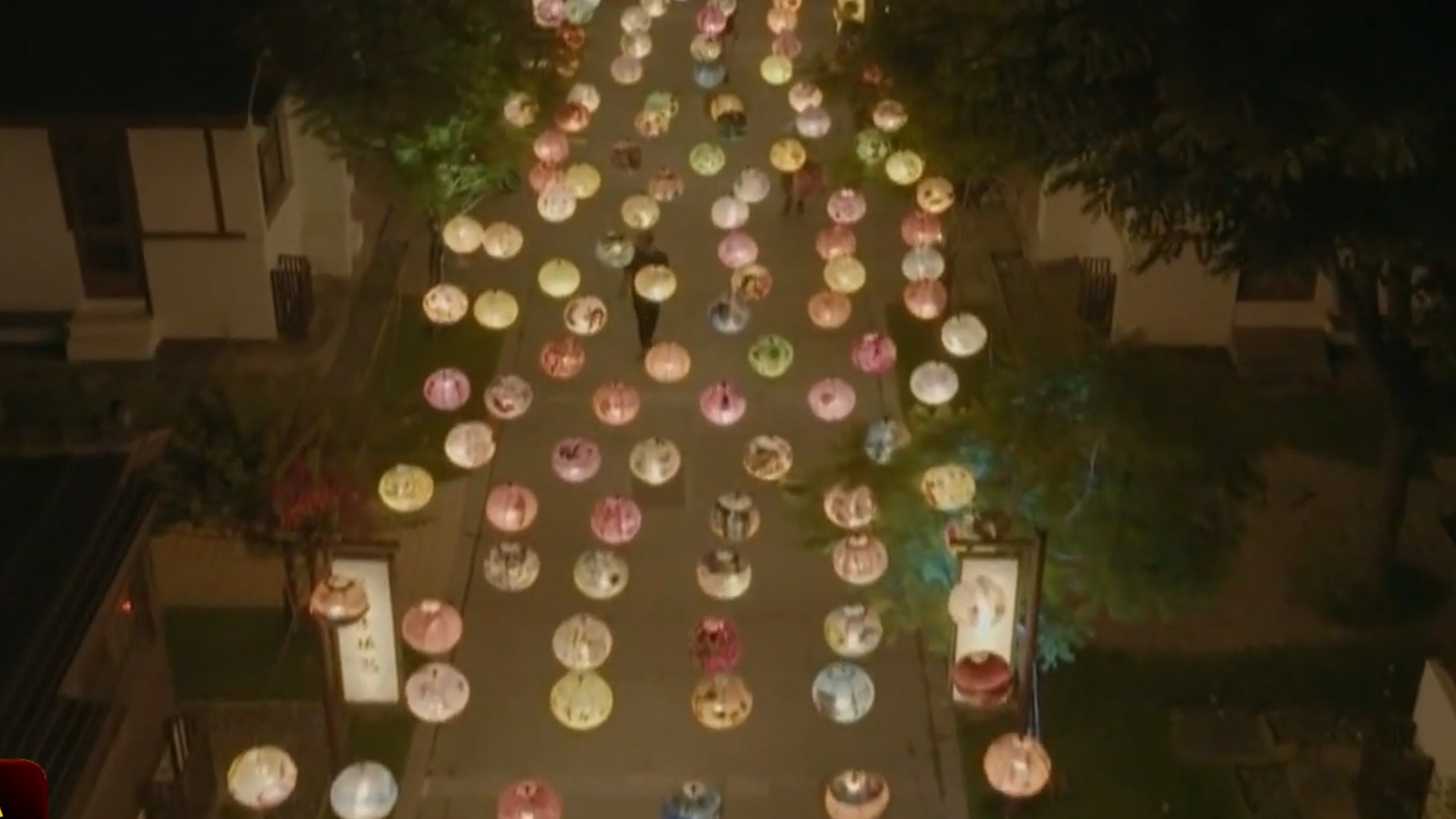 端午連假,彰化鹿港小鎮舉辦光影藝術節,從桂花巷高掛整排燈籠,空拍鏡頭看下去就像「燈籠海」,到舊鹿港溪河岸也打造梅花鹿、魚曜龍門等噴泉主題燈光,讓遊客拍個盡興。
