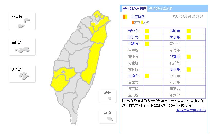 北北基、宜蘭縣、桃園市、花蓮縣、嘉義市、台南市(圖/中央氣象局)