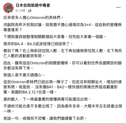 ▼林氏璧根據國外統計數據,推測BA.4、BA.5影響程度有限,不用過度擔心。(圖/翻攝自林氏璧臉書)