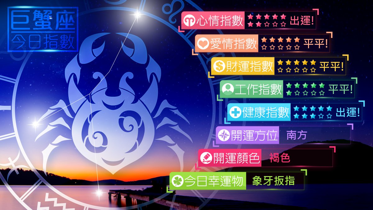 財運:學習投資多增加,加強你自信;對旅游的投資亦如此,開闊你視野。