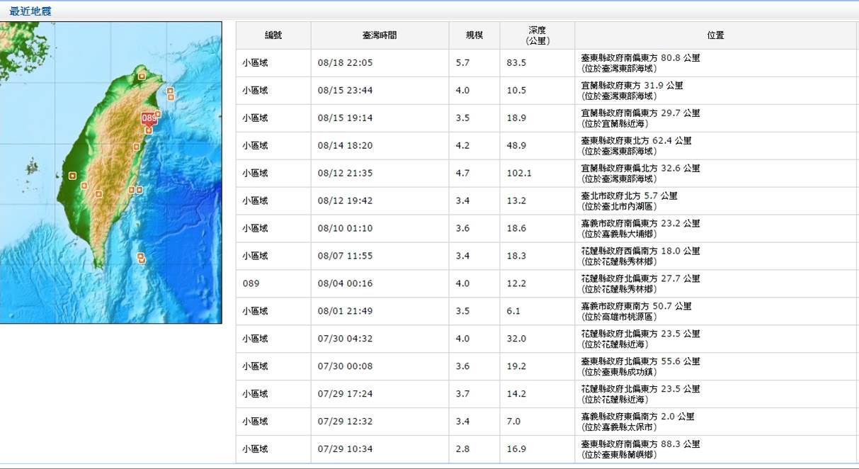 今天19號,正適逢農曆7月17日,跟北極殿在臉書PO出的預言時間相當吻合,但根據中央氣象局的資料顯示,18日到19日截稿為止,僅在18日晚間10點5分,發生深度83.5公里、規模5.7的地震,震央位置在台東外海。