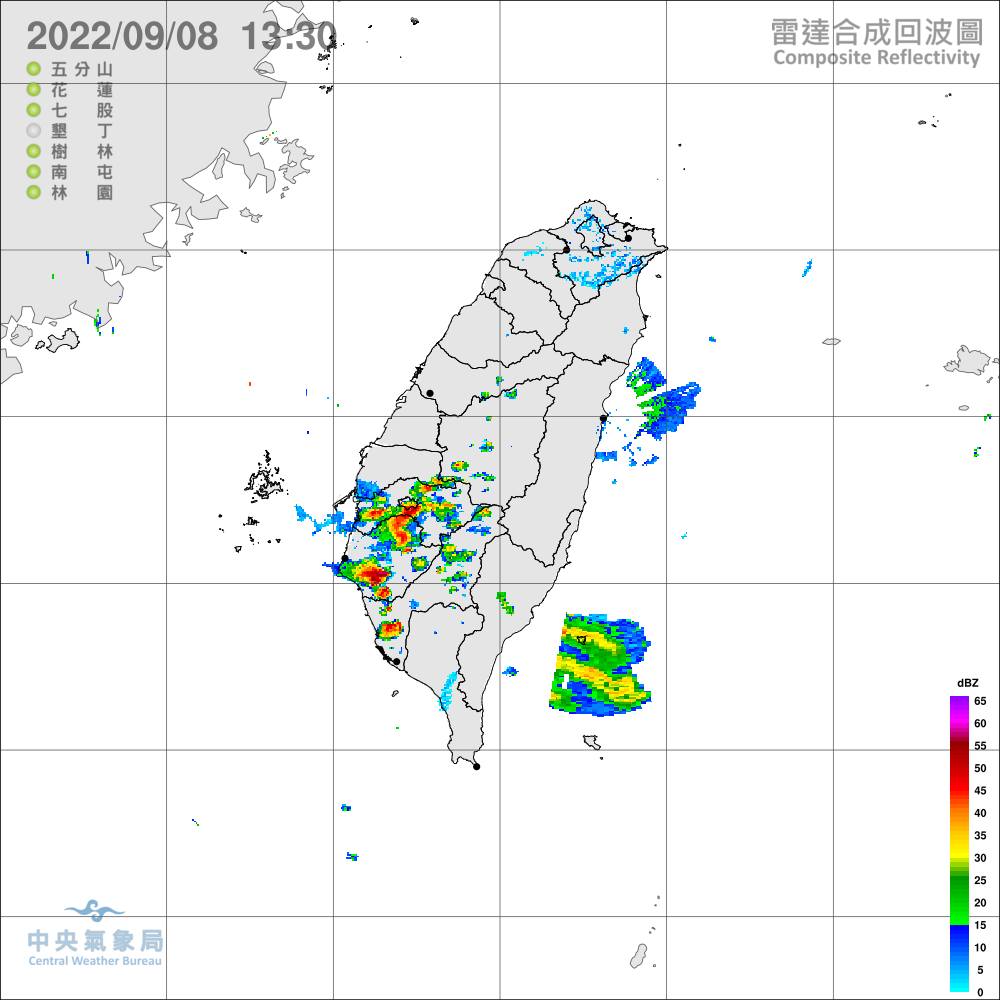 氣象局指出,由於對流雲系發展旺盛,亦有短延時強降雨,今(8)日嘉義以南地區有局部大雨發生的機率,請注意雷擊、強陣風及溪水暴漲。