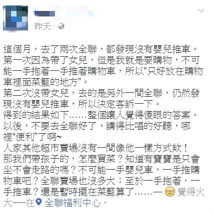 這名媽媽在臉書抱怨對全聯的不滿,沒想到卻反遭網友砲轟,「