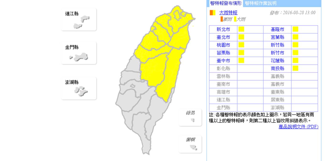 對流雲系發展旺盛,氣象局持續針對臺中以北、南投、宜蘭及花蓮地區,發布大雨特報,居住在山居或低窪地區民眾,請注意瞬間大雨、雷擊、強陣風及溪水暴漲。提醒民眾,受華南水氣以及