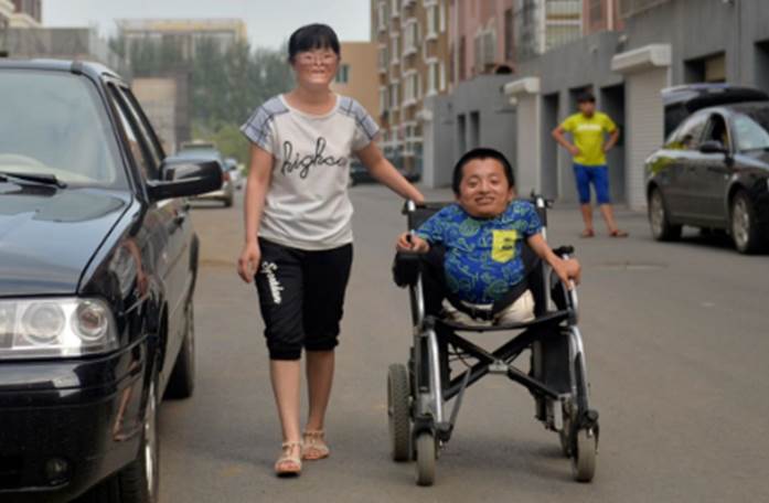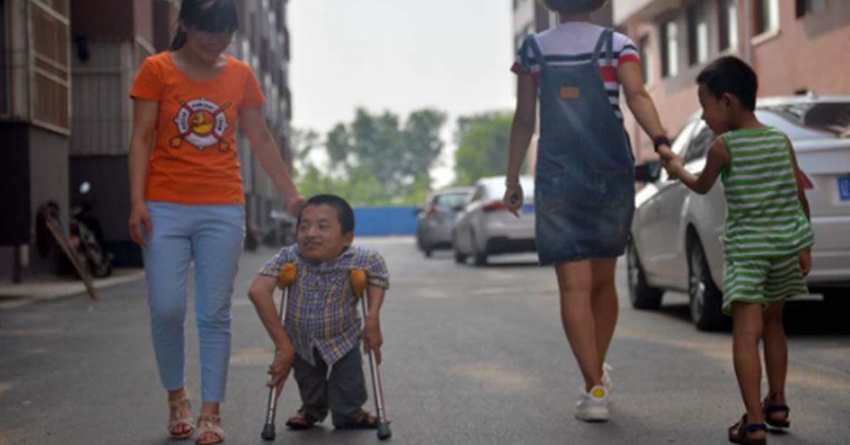 29歲的董志軍由於患有先天性佝僂病,四肢發育畸形,身高只有80公分,被稱為「袖珍人」天生軟骨營養不良,使得他的童年只能在病榻上度過,長大後他必須靠著拐杖才能行走,大家對於他能活過18歲都稱是奇蹟。