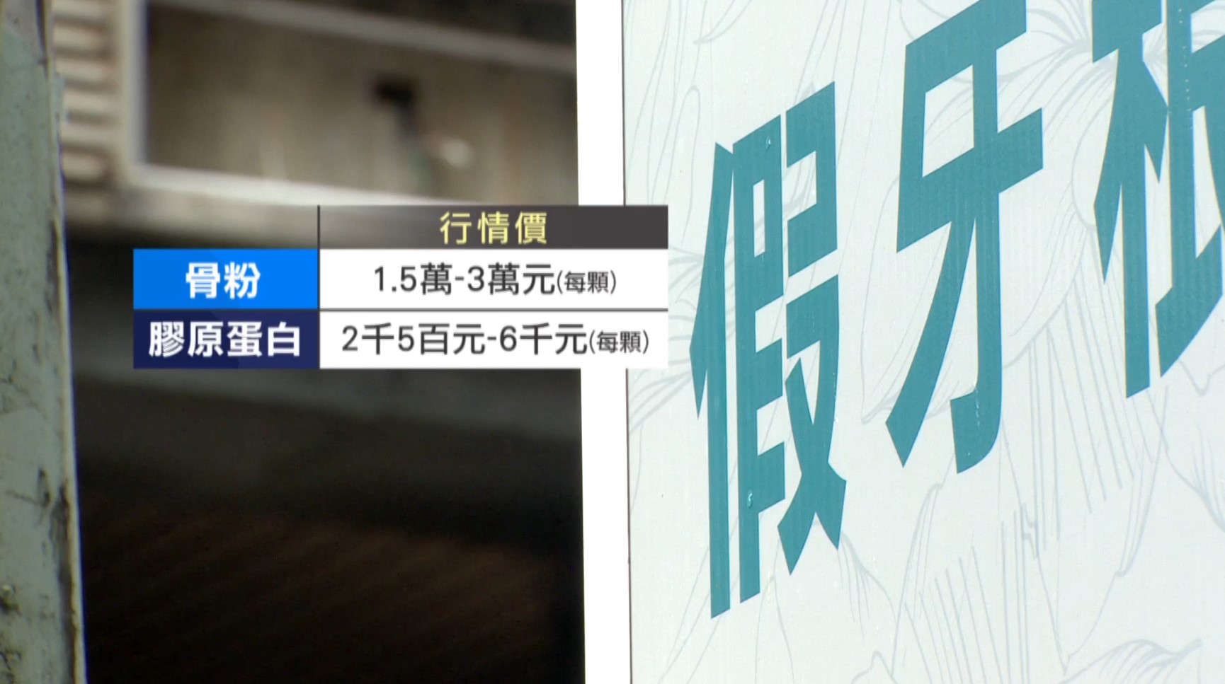 查查公定行情價,補骨粉每顆1.5萬到3萬元不等,膠原蛋白則是一顆2500元到6000元不等,被如此超收民眾很難置信,不過附近鄰居卻見怪不怪。附近鄰居:「做的很貴啊,拔牙也要錢,以前有去做牙齒,他們就說做的(價錢)不合理。」