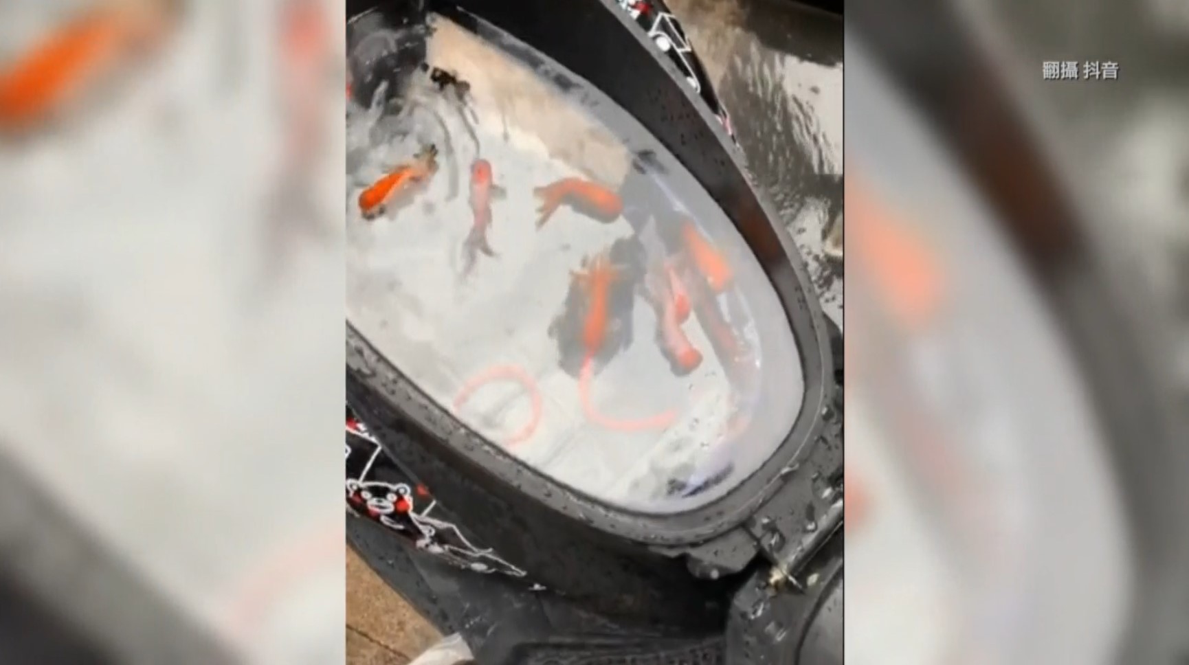這名機車車主,把車箱水放的更滿,裡面養著9隻金魚,游啊游,引起網友熱烈討論,有人說,如果引擎溫度夠就變鮮魚湯了,還有人建議加蔥加薑,但也有人擔心椅墊蓋起來魚會不會死光光。