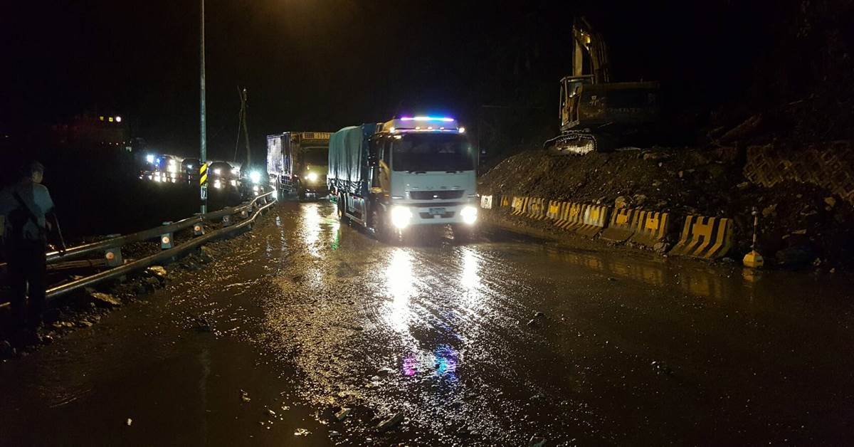 ▼蘇花公路晚間發生了土石坍方的情況。