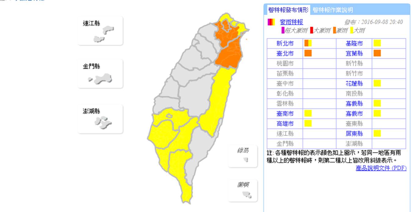 豪雨特報,基隆、花蓮及嘉義以南也有局部