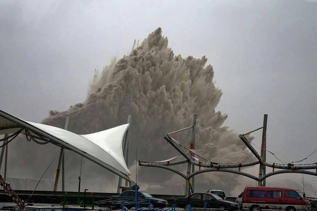另外,強颱「莫蘭蒂」所帶來的狂風暴雨非常劇烈,有民眾就在台東縣的富岡漁港拍到令人震懾的10公尺高巨浪,防波堤就像裝飾品一樣,一波又一波的巨浪無情拍打,還把導引船隻的「紅燈塔」應聲打斷,網友們看到後都驚嚇不已,直呼「這根本就是爆炸現場吧」、「好像火山爆發喔」、「這畫面讓我想到了南亞海嘯」、「這絕對不是海浪別想騙我」、「完美詮釋驚濤駭浪」,也有網友kuso回應「是放了幾支note7?」