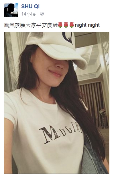 ▼舒淇希望大家都能平安度過颱風天(圖/舒淇臉書)