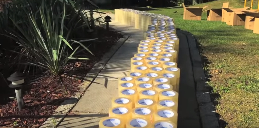 ▼使用了好幾捆的膠帶來綑房子(圖/youtube/Let's Tape It)