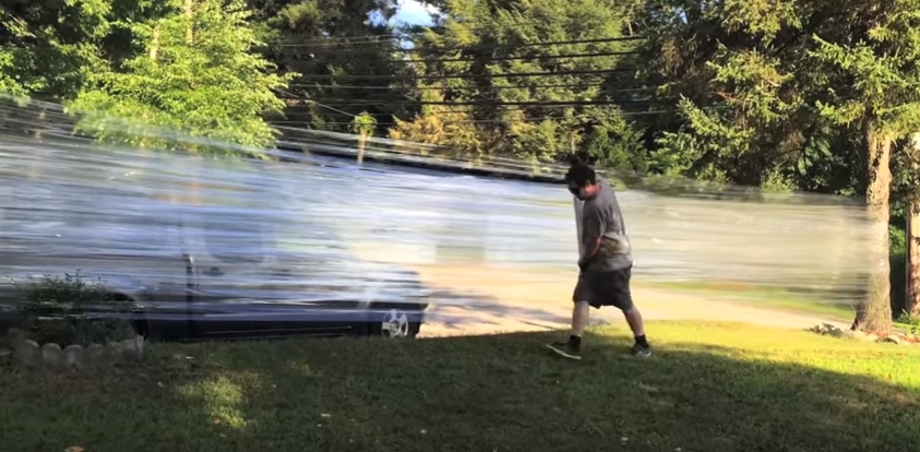 ▼連花園裡的樹都不放過(圖/youtube/Let's Tape It)