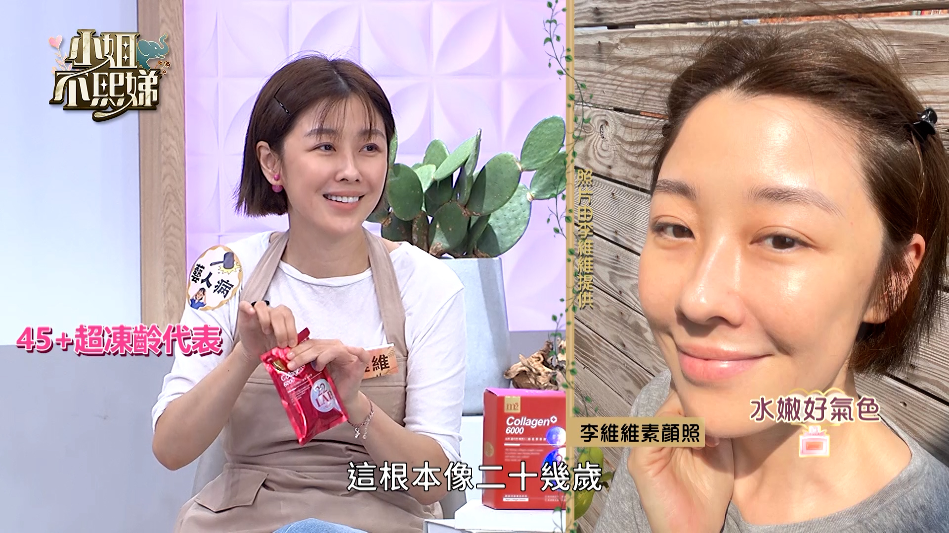 上了年紀之後,要是跟年輕人站在一起,拍照都要開美肌或是猛找角度,但45+的李維維喝了孫仙膠原飲後,在鏡頭面前的狀態超加分,好氣色由內而外散發出來,拍戲上妝妝感也更服貼,膠原蛋白終於又再次回歸了!。