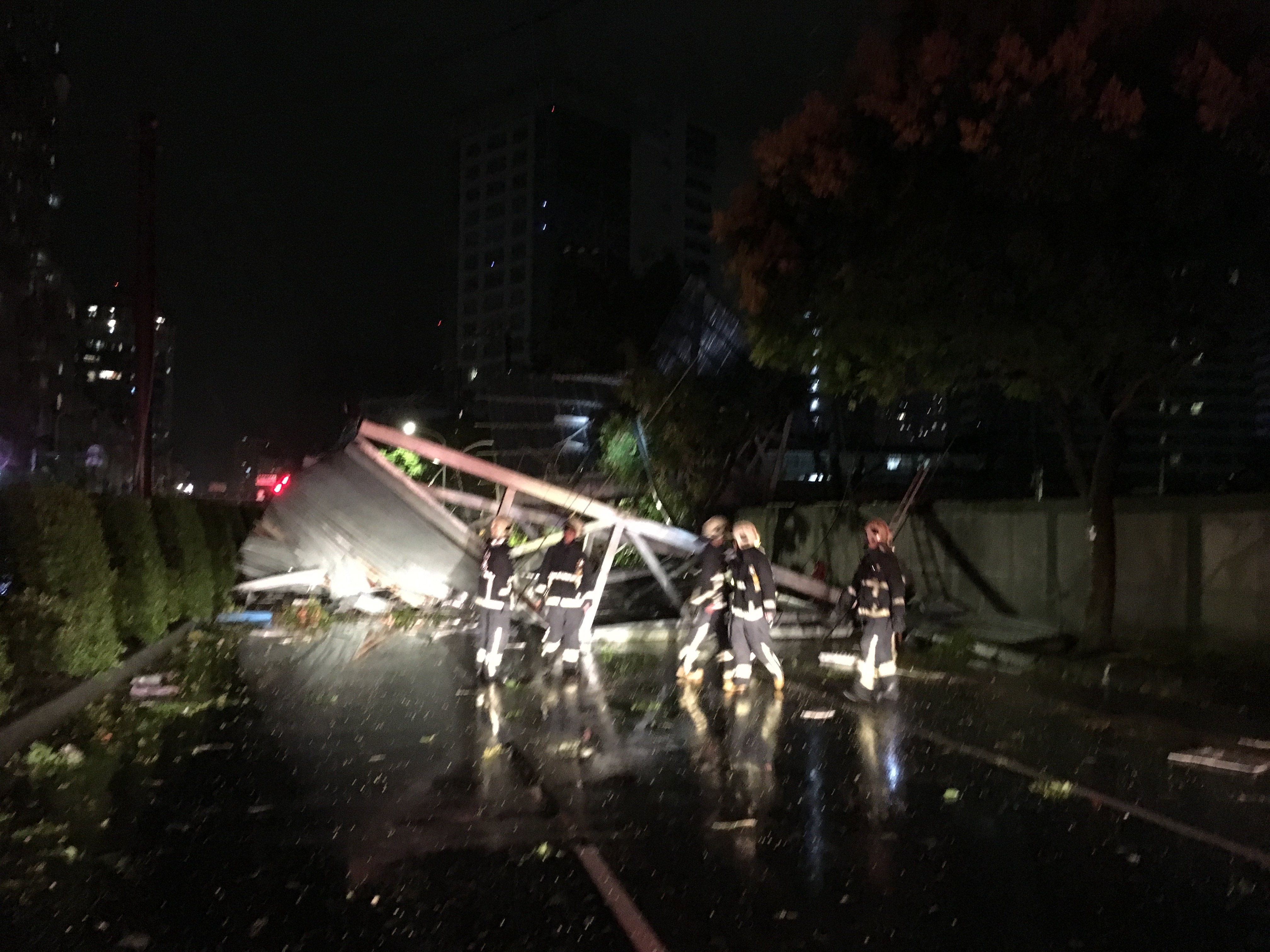 ▼新店區營區女軍士官寢室鐵皮建築被吹落,現場共8人受傷(1重傷、7輕傷)意識清醒,輕微擦傷送慈濟醫院。