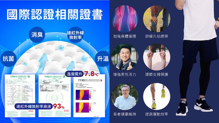 於是找到了銷售超過百萬件的塑崩褲,選擇了針對男性身形設計的兩件式「男版塑崩褲」陪他一起動靜皆宜,整件都採用石墨烯材質,能釋放特定遠紅外線波長、促進下半身微循環,透過遠紅外線能量產生「被動式」循環的效果,穿上就能達到慢跑的微循環,只要穿著走動就能消耗熱量,達到有氧運動的效果,幫助促進新陳代謝的效果及養身保健,對男性機能非常有助益,穿過的男性都覺得有下半身活起來的感覺,另外也能舒緩久坐久站、運動後的不舒適,真的是越穿越健康。