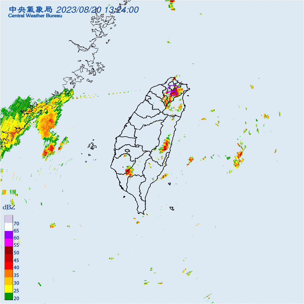 午後對流雲系發展旺盛,易有短延時強降雨,中央氣象局表示,今(20)日對8縣市發布大雨特報、對2縣市發布大雷雨特報,請民眾注意雷擊及強陣風,山區請注意坍方、落石及溪水暴漲。