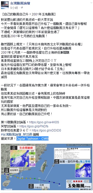 「台灣颱風論壇」指出,國際上規定:「只有日本擁有西北太平洋颱風的命名權」。