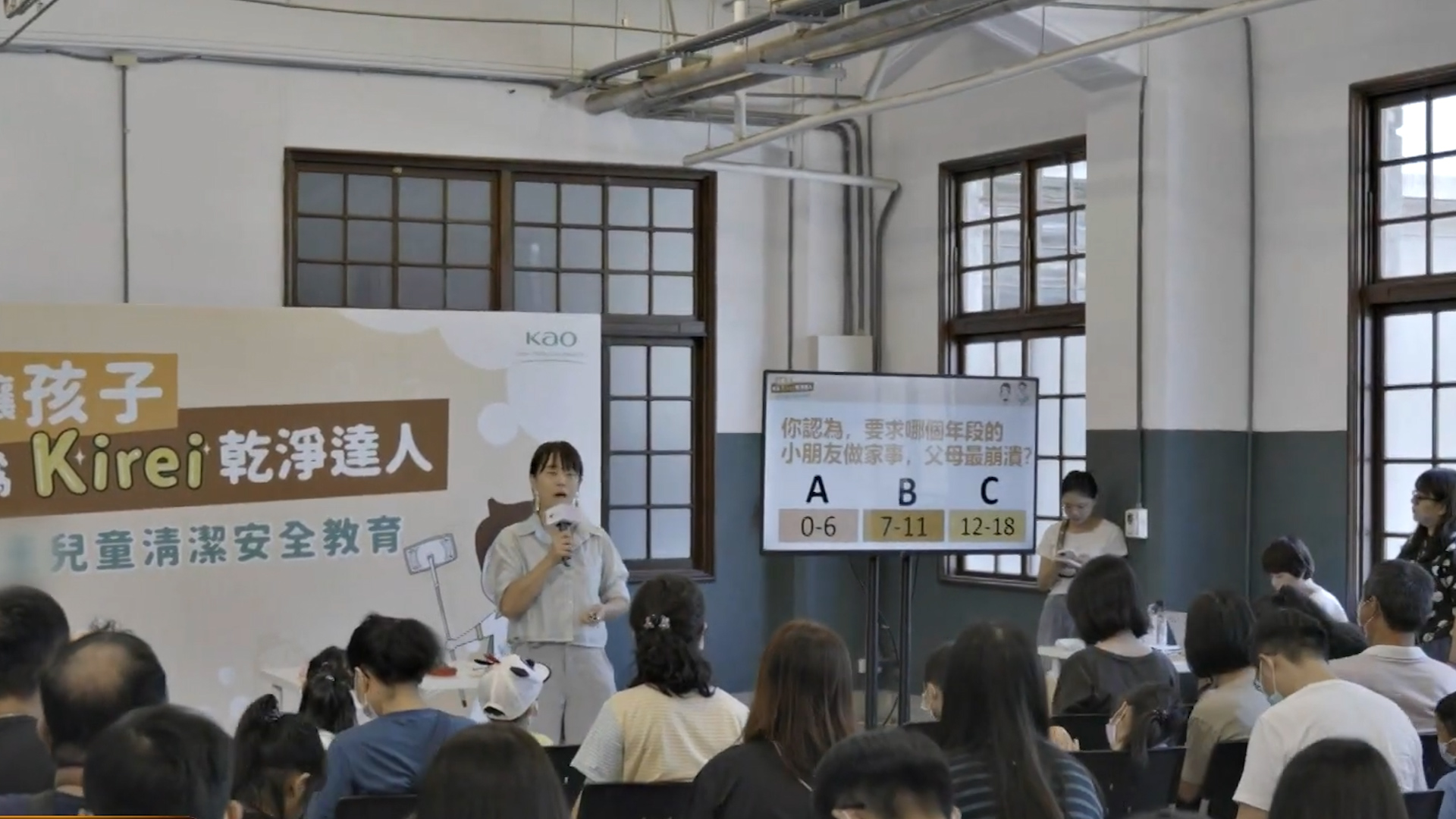 家長 方小姐:「感謝花王(台灣)辦這樣子的講座,對爸爸媽媽來說,其實做家事是很日常的事情,但是是可以有方法的,我們都很希望鼓勵小朋友做家事,但我們常常缺乏引導的方法,但其實做事情有方法,小朋友也會比較有成就感,大人在引導的時候也比較有方向感」