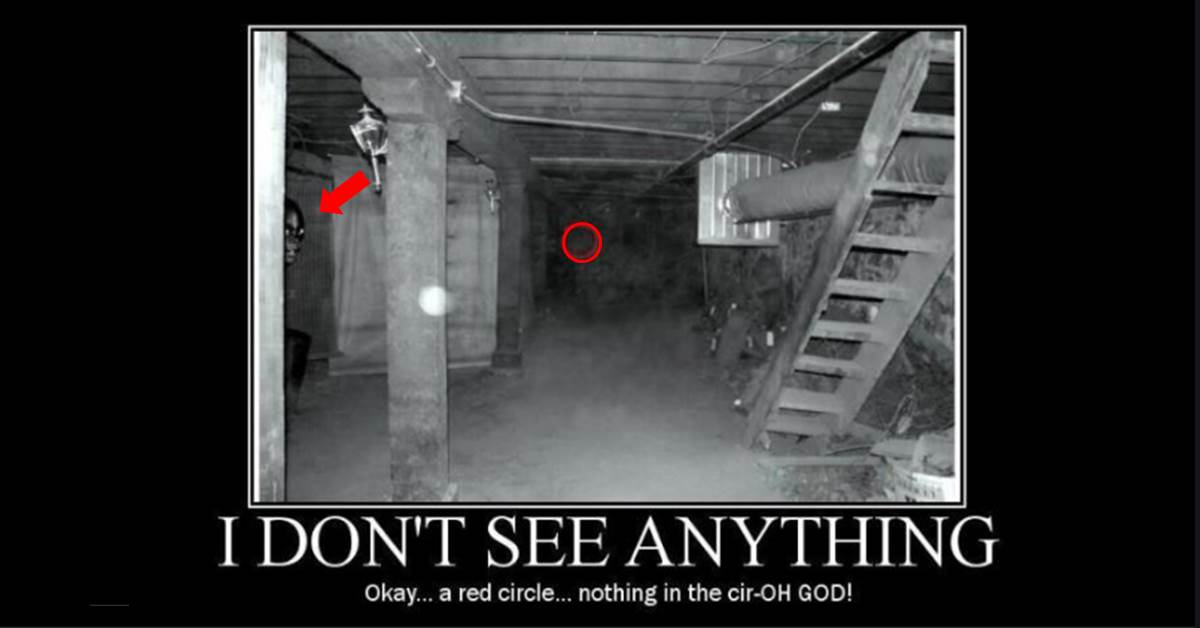 國外網友12日在網站《imgur》分享一張照片,地點就位在漆黑不見五指的地下室,PO文的人刻意在照片中畫了個紅圈,還提醒大家要將圖片放大,才可以看得更清楚,並開玩笑說「我沒看到任何東西」。