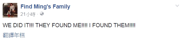 ▼杜明書開心在臉書分享已經連絡上台灣親人。(圖/Find Ming's Family臉書)