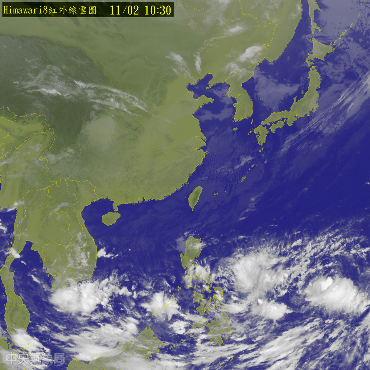▼從衛星雲圖可以看到菲律賓東方有2個熱低壓蠢蠢欲動。(圖/中央氣象局)