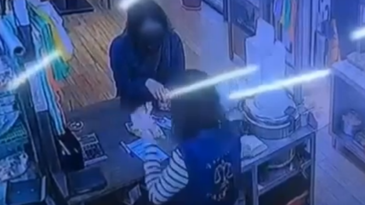 只見馬路中央,幾張鈔票飛呀飛,警車立刻停下。兩名女警下車撿錢,風一直吹,鈔票跟著飛,女警趕緊用腳踩,撿了好幾張千元鈔,發現一名婦人迎面而來。