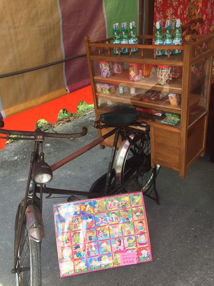 從照片中可以看到,「流水席」宴會場入口處上下聯分別寫著「林家公子真英俊」、「陳家千金好美麗」,還掛上繡有八仙圖案的華麗彩布「八仙彩」,地板還畫著「跳格子」的童趣遊戲,排場和氣勢相當不得了。