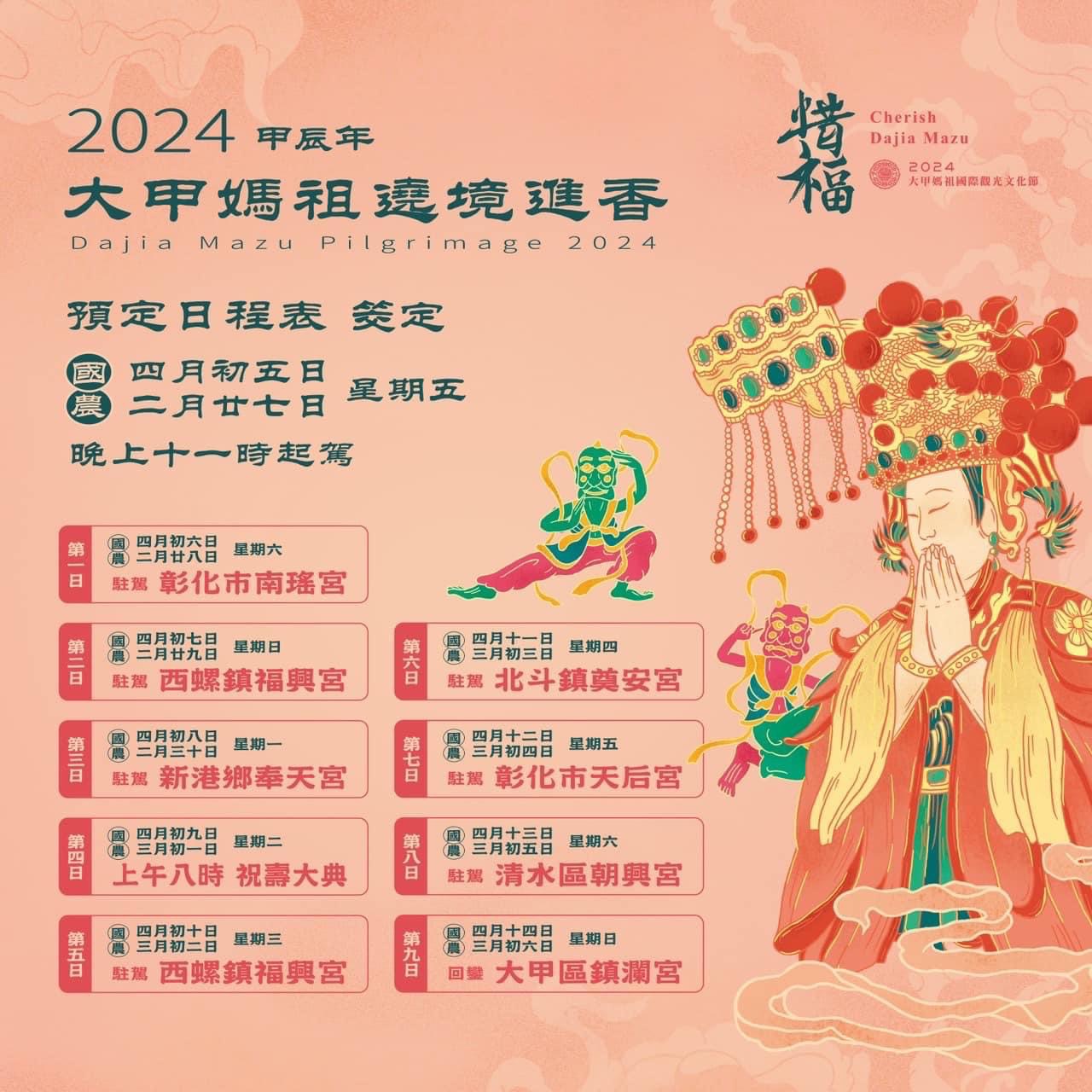 ▼大甲媽祖遶境日程表。(圖/取自大甲鎮瀾宮官網)
