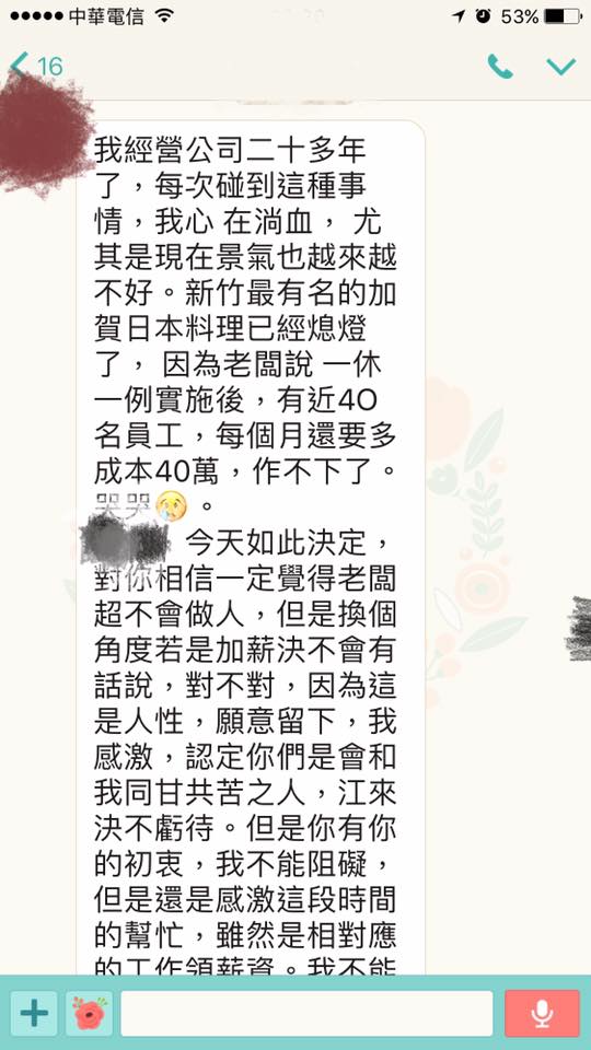 一名網友在臉書《爆料公社》貼文表示,自己在鄉下的一家傳產小企業工作,整個公司就只有3名員工,今年9月28日教師節,正巧遇上梅姬颱風假,老闆原本要求員工們照常上班,而且不提供加班費或補休,但最後基於安全考量,所以後來沒有上班。