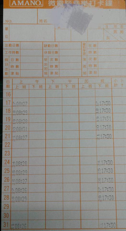 ▼原PO打卡資料。(圖/臉書《爆料公社》)