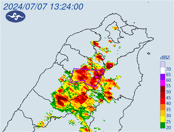 中央氣象署今(7)日13時31分,針對4縣市發布大雷雨即時訊息,提醒民眾留意雨勢。