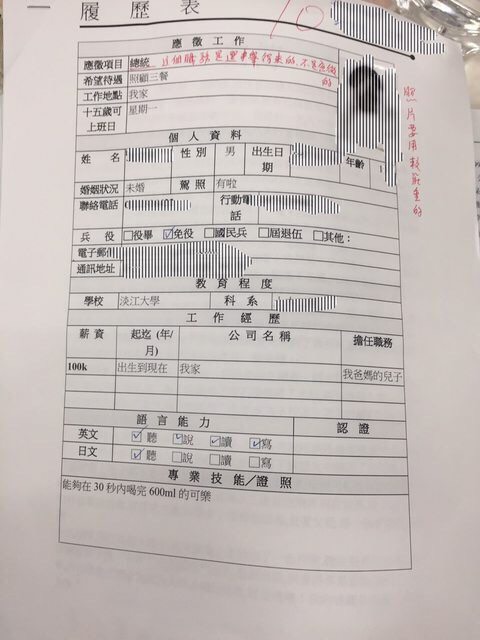 個人履歷是找工作非常重要的東西,好的內容加上精彩的故事,肯定讓評審眼睛為之一亮。最近有網友在《Dcard》分享了同學在課堂上寫的