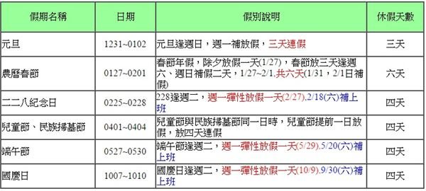 ▼明年連續假期一覽表。