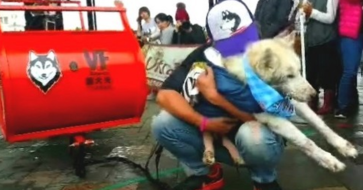 一般人印象中,哈士奇雪橇大賽,應該是狗狗站在起跑點,拉著雪橇往前衝,但今年的比賽中,有個很特別的畫面。一隻