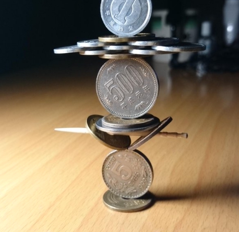 硬幣的遊戲,但你知道硬幣達人如何將硬幣把玩到極致嗎?日本有一名堆硬幣達人,「た ぬ」於12月3日在推特上發表堆硬幣的新作品,只見照片中硬幣被堆成結構複雜的