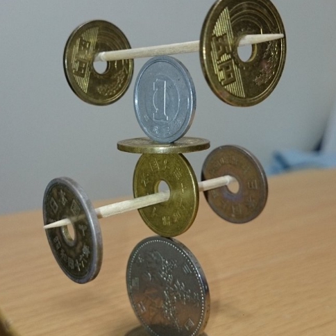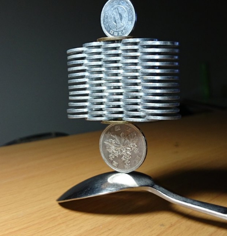 「た ぬ」經常在社群媒體上分享堆疊硬幣的絕技,許多網友都看得目瞪口呆,認為這實在太不科學,硬幣在他手中任意把玩、形狀變化萬千,好像失重一樣,甚至可以輕易用一根細細的牙籤,撐起好幾個直立起來的硬幣,每一個作品都讓人驚嘆。