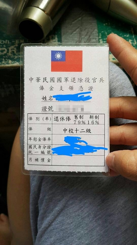 這名女網友昨(7日)在「爆廢公社」PO文,並且附上一張「中華民國國軍退除役官兵俸金支領憑證」的照片,從照片中可以看到,上頭俸級寫著「中校12級」,對於軍旅不熟的她,想問大家「爸爸的官階是不是很大?」,並且補充說明父親退役時曾獲選國軍楷模,而爺爺的軍階也讓她感到很好奇,所以便順帶一提,「我95歲的爺爺是★★★(指上將)」。