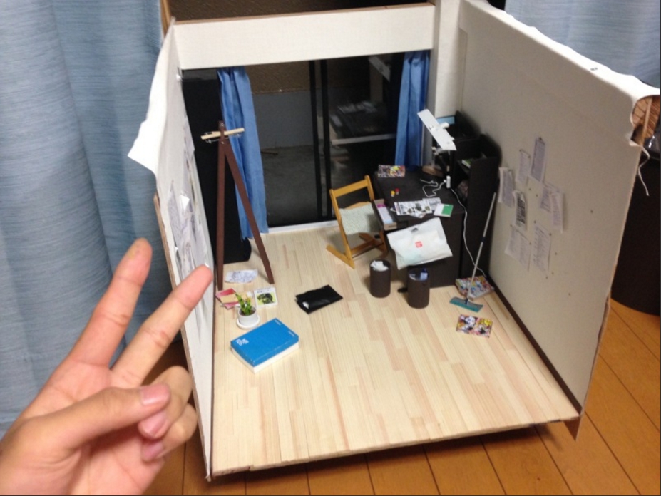 這個1/6大小的房間立體透視模型是日本一位名叫Mozu的17歲高二男生製作而成,所有模型中的一切家具、書本和文具等都是親手製作。最特別是迷你房間中的書本都是他使用電腦軟體,將真實書本的封面縮小成1/6後印製出來,再使用膠水黏著成迷你書,超級精細的手工讓網友不禁稱讚鬼斧神工,開玩笑說:「媽媽應該不敢叫你整理房間了」。
