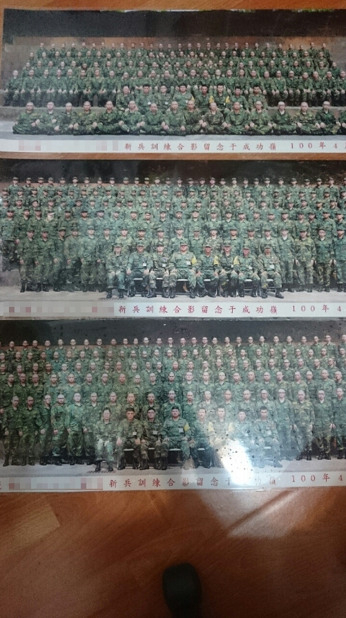 新訓的時候,照相廠商都會到營區裡幫所有同梯的朋友拍張大合照紀念,隨後還講起一連串的話術要大家買個幾張留念,殊不知網友就是其中一個被「催眠」的菜兵,還一次大手筆買下了全套3張,害他現在超級
