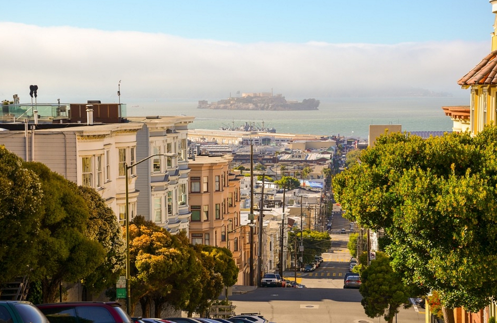 舊金山高高低低、起起伏伏的獨特地形,導致從地圖上看起來沒有一條路是平的,最近有網友前往舊金山旅遊,看到舊金山所有停在斜坡上的車子,輪胎都不打正,而是相當一致的往外