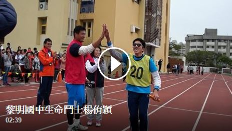 楊侑穎勇於突破身體上的殘缺,雖然每一步都跑得比別人辛苦,但他沒有洩氣努力完成不可能的任務,校方在比賽後也特別頒發「