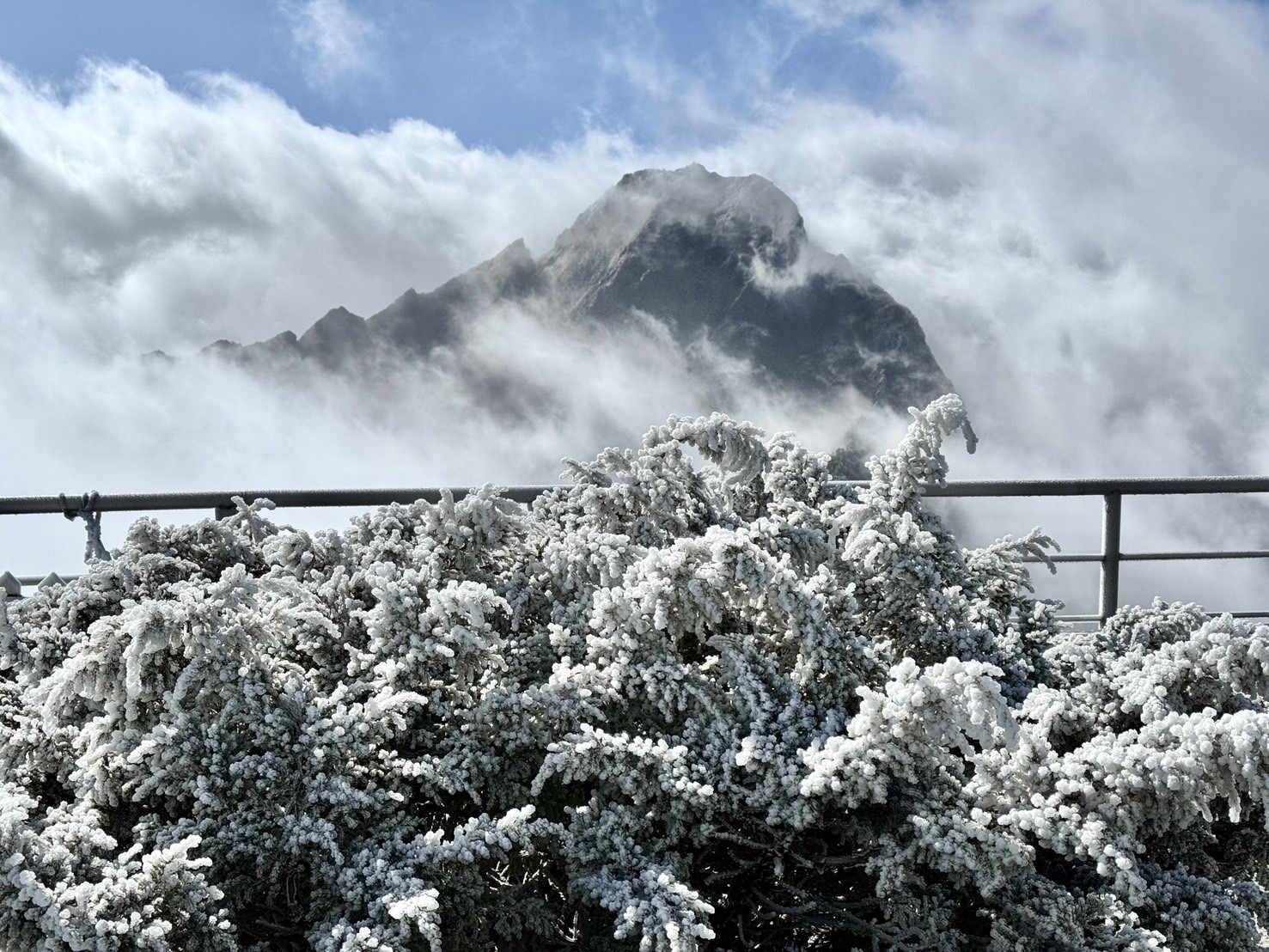 冷氣團影響下,全台各地天氣持續寒冷。根據中央氣象署資料,玉山氣象站今(19)日清晨錄得零下4.1度低溫,伴隨氣候條件,山區出現霧淞和雨淞,山巒間銀裝素裹,宛如仙境,美景令人驚嘆。