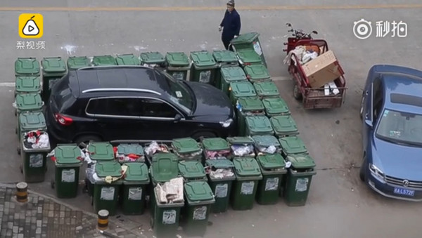 俗話說「吃飯皇帝大」,午餐尖峰時間一到,許多美食巷弄間都會擠的水洩不通,尤其是有許多汽車駕駛貪圖方便,隨意將愛車停靠在紅線旁或是別人家門口,除了讓整條道路大打結,也影響了住戶通行出入。大陸就有這麼一個「處理」違停的妙招,清潔人員由於無法和違停車主取得聯絡,一怒之下竟然使用42個垃圾桶包圍休旅車,讓車主進退兩難,引發網友熱議。