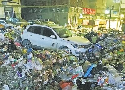 ▼這輛違停車比起被垃圾桶包圍下場更慘,直接困在十噸垃圾中(圖/大河網)
